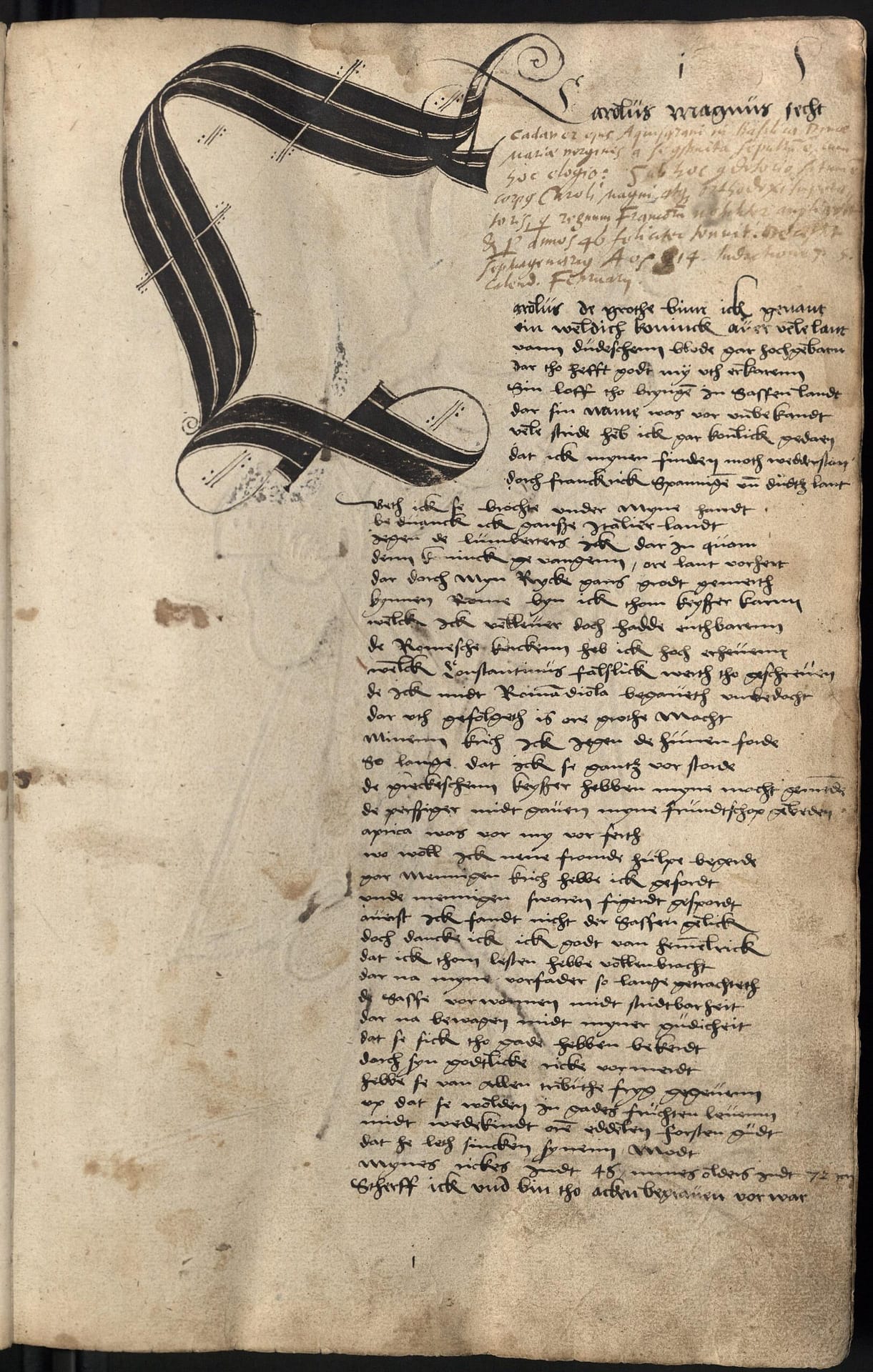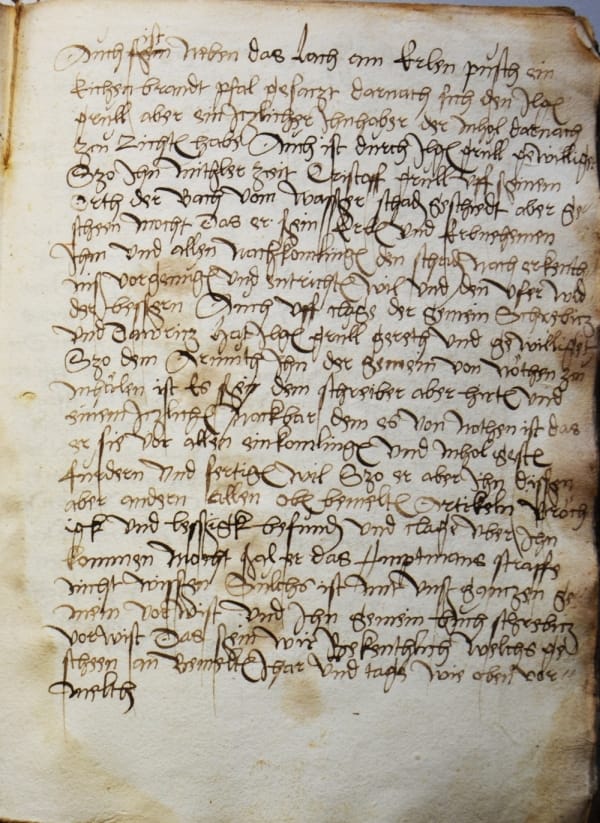 Topic and background: The Sparenberch Chronicle is a city chronicle of the Free Hanseatic City of Bremen, written around 1550. The chronicle records the history of the city in particular, but also major political events, particularly contemporary records of the Reformation and the Schmalkaldic War. As is usual for chronicles of this period, the events were written down chronologically, with those entries that had taken place before the author’s experience being taken from other chronicles with minor changes. Therefore, the first chapters are written in Latin, while the later chapters are written in Middle Low German. The Sparenberch Chronicle has not yet been published in a transcribed or edited form, which is mainly due to the fact that the Renner Chronicle, which was written about 30 years later, is available as an edition and takes over large parts of the Sparenberch Chronicle.